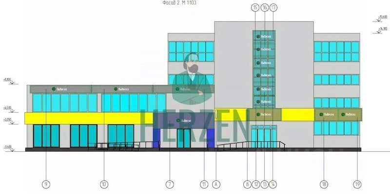 1-й этаж площадью 1 772 м2. Высота потолка от2,55 м. до 4 м.