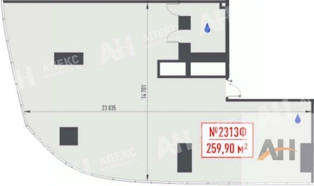 Лот 960408 Продажа коммерческого помещения в новостройке: 259,90 кв. м., 23 этаж в комплексе ONE TOWER, 1 очередь, корп.1, сдача: 3кв. , этажей: 90, адрес 1 Красногвардейский прд., д. 13, Застройщик: MR PRIVATE.
