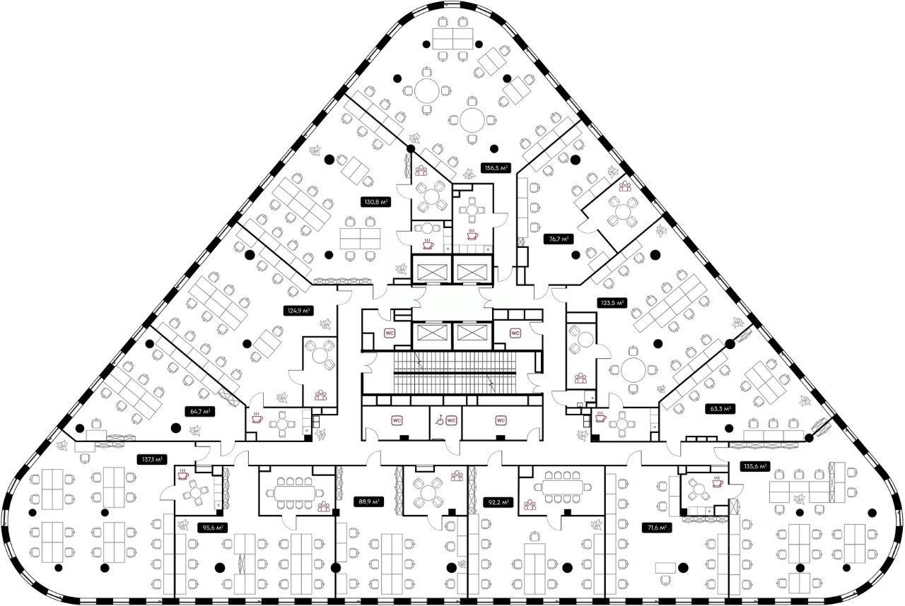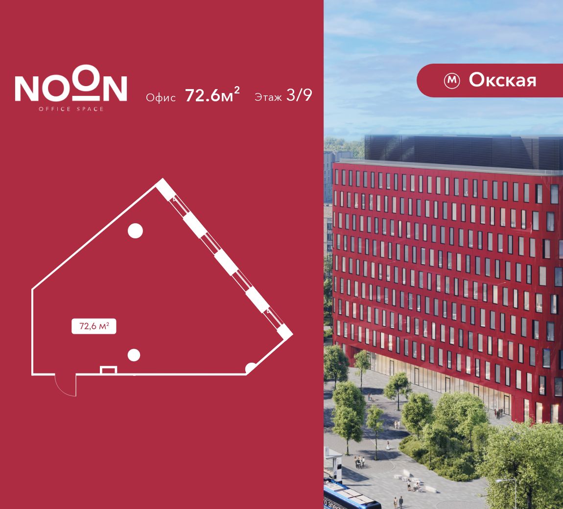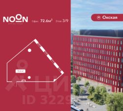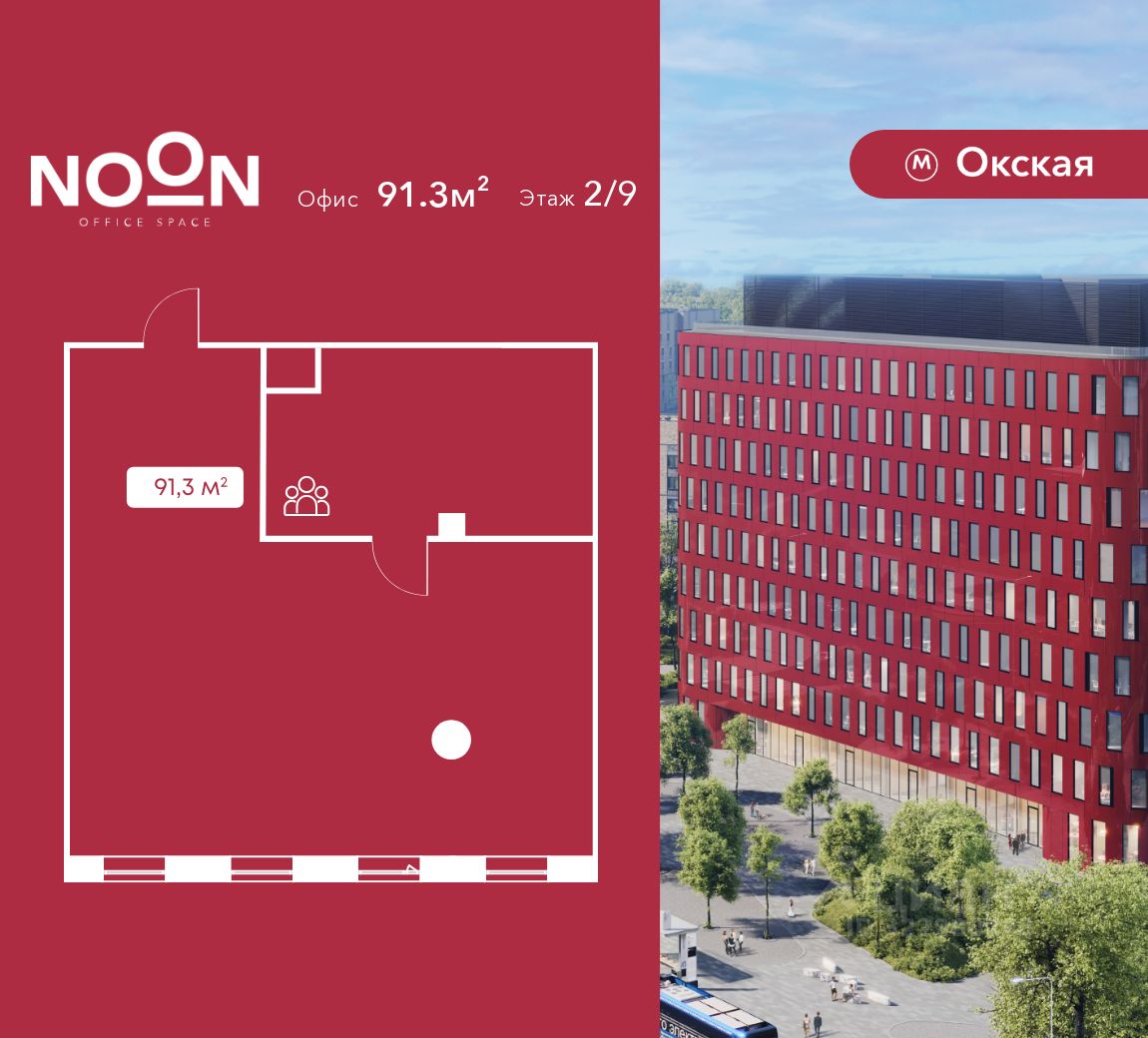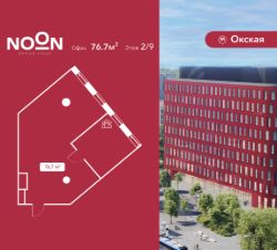 Продается офисное помещение площадью 76.7 м2 на 2 этаже в бизнес-центре NOON от