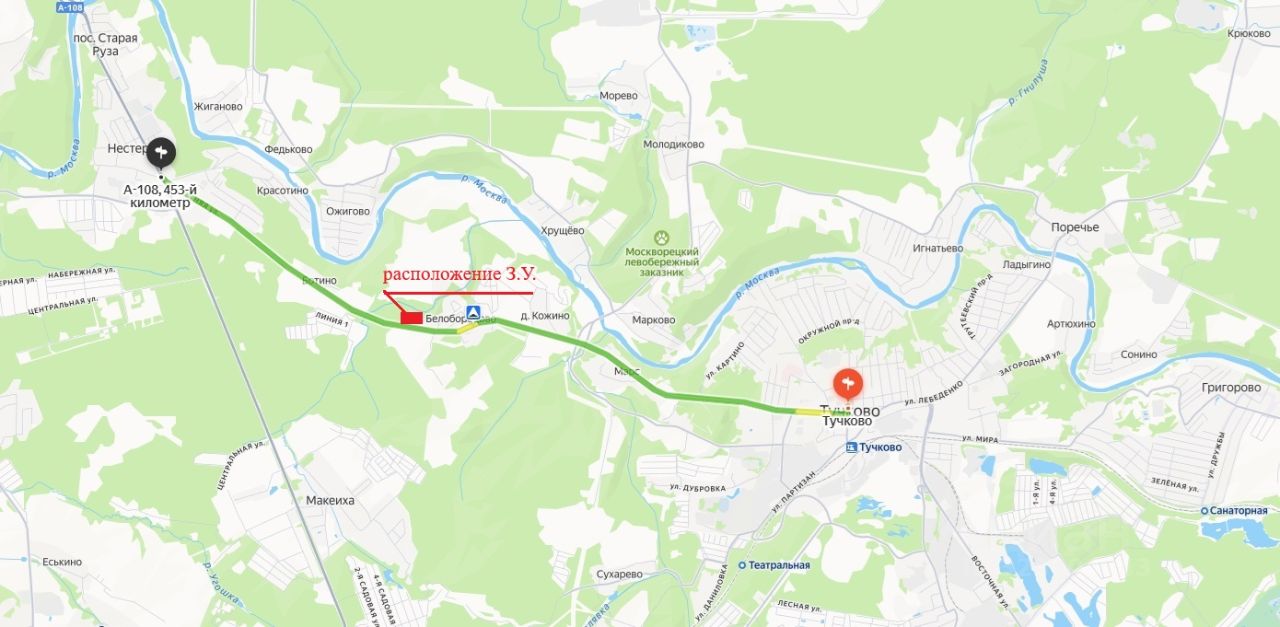Земельный участок примыкает к дороге Тучково-Нестерово и имеет три въезда. От дороги отделен забором с возможностью установки рекламы. Огороженная и охраняемая территория. На участке расположены: ангар, два дома и хозяйственные постройки. Участок полностью огорожен забором. Основная часть участка примыкает к лесу.