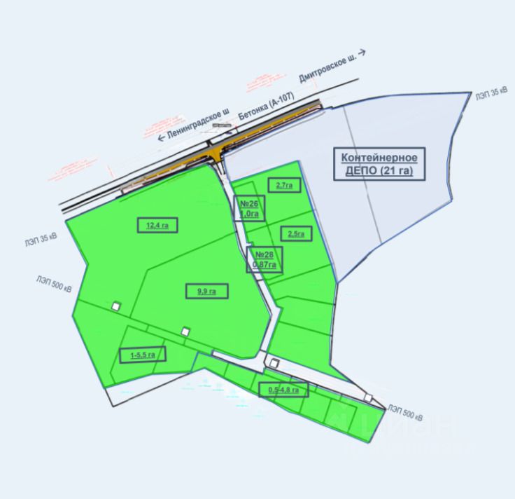 Учaстки от 0,5 дo 12,4 га (c вoзмoжнocтью oбъeдинения);