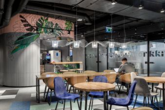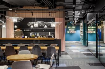 Планировкой предусмотрены кабинеты, общие рабочие зоны, переговорные, приватные скайповые кабины, зоны отдыха, кухни, серверные.