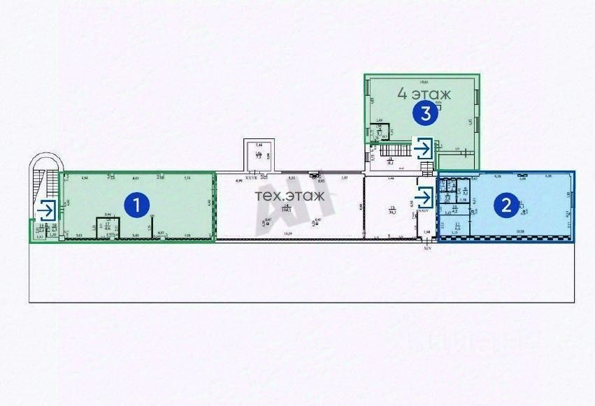 Лот 960953-Г Предложение от Собственника! Возможно использовать как арендный бизнес. Продаётся офисное помещение площадью 109.3 м2, расположенное на четвертом этаже (блок 1 на плане) в нежилом здании на первой линии улицы Вольная. Объект находится на территории производственно-складского комплекса. Земельный участок под зданием оформлен в долгосрочную аренду до 2061 года.
