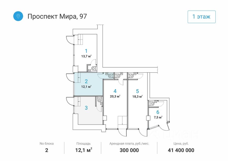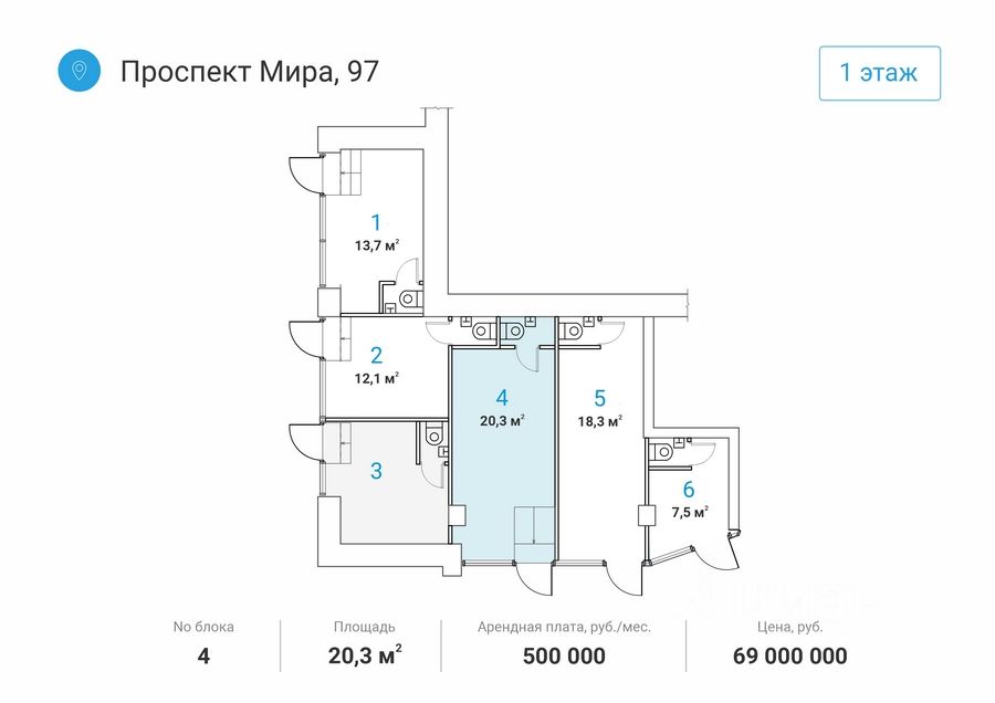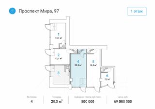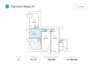 Прямая продажа без комиссий! Помещения располагаются на Проспекте Мира, д.97, в шаговой доступности от метро "Алексеевская" - 1 минута пешком. Отдельный вход c первой линии в каждый блок. Место для размещения вывески. Помещения расположены в крупном сложившемся жилом районе с высокой плотностью застройки и развитой инфраструктурой. В окружении находятся "ВДНХ", Телецентр и парк "Останкино", Деловой центр с апарт-комплексом "Парк Мира", театр танца Аллы Духовой "Todes".