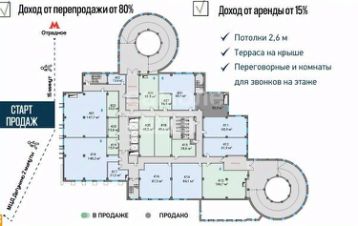 Универсальность пространства обеспечивается сочетанием производственных, складских и офисных площадей на этаже. Проект предусматривает комфортную зеленую зону вокруг центра, дополненную новыми подъездами и паковочными местами. На крыше здания дополнительные пространства для отдыха и работы резидентов.