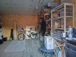 Асфальтированный подъезд, электричество, свет, металлические стеллажи.