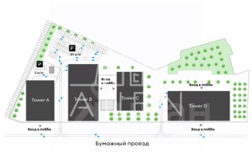 На территории комплекса парк, площадь 5000м2; собственная инфраструктура; лаунж-этаж и конференц-зал.