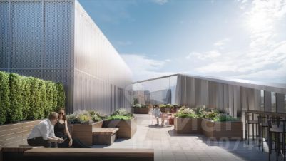 Примечательной деталью в концепции благоустройства станет приватная эксплуатируемая кровля с озеленением и видами на город.
