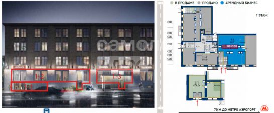 Арт. 122814934 В продаже помещение на первом этаже под торговлю на трафике в минуте от метро Аэропорт.