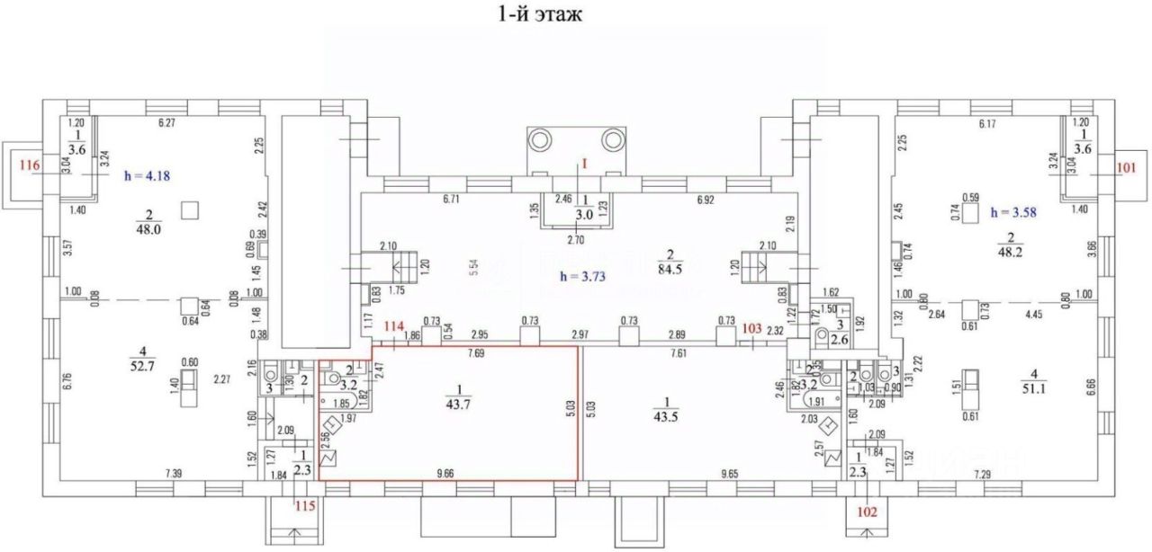 - 1-й этаж общая площадь 443 кв.м. (в том числе: вестибюль/ресепшен, 2 отдельных
