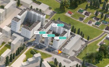 - напротив пешеходный переход к знаковому объекту комплекса - комьюнити центру