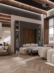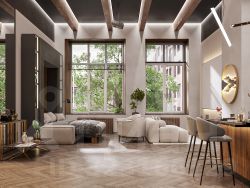 - Большие оконные пролеты и высокие потолки придают дополнительное ощущения комфорта и визуально увеличивают площадь помещение