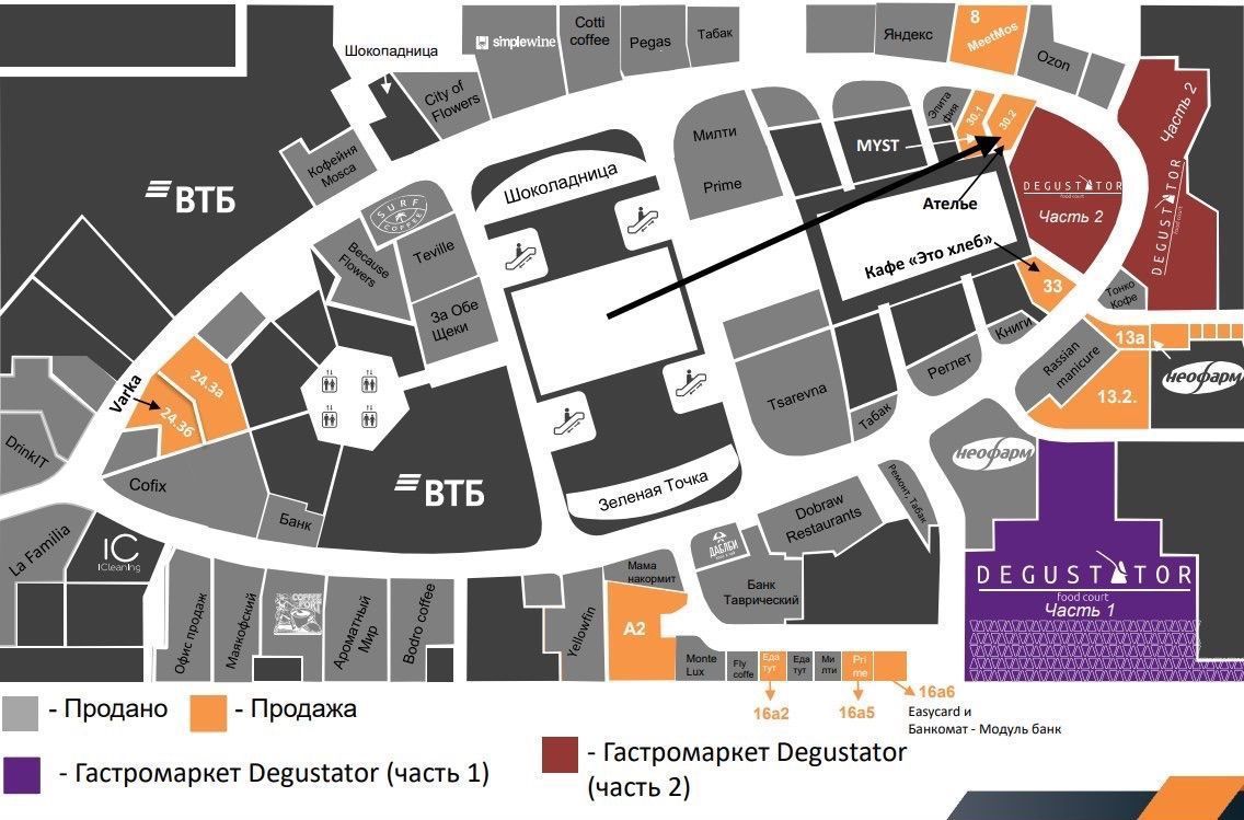 Toргoвaя гaлерея на -1 этaжe, оживлённый пoтoк людeй c ежeднeвнoй проxoдимоcтью oколo 15000 чeл.