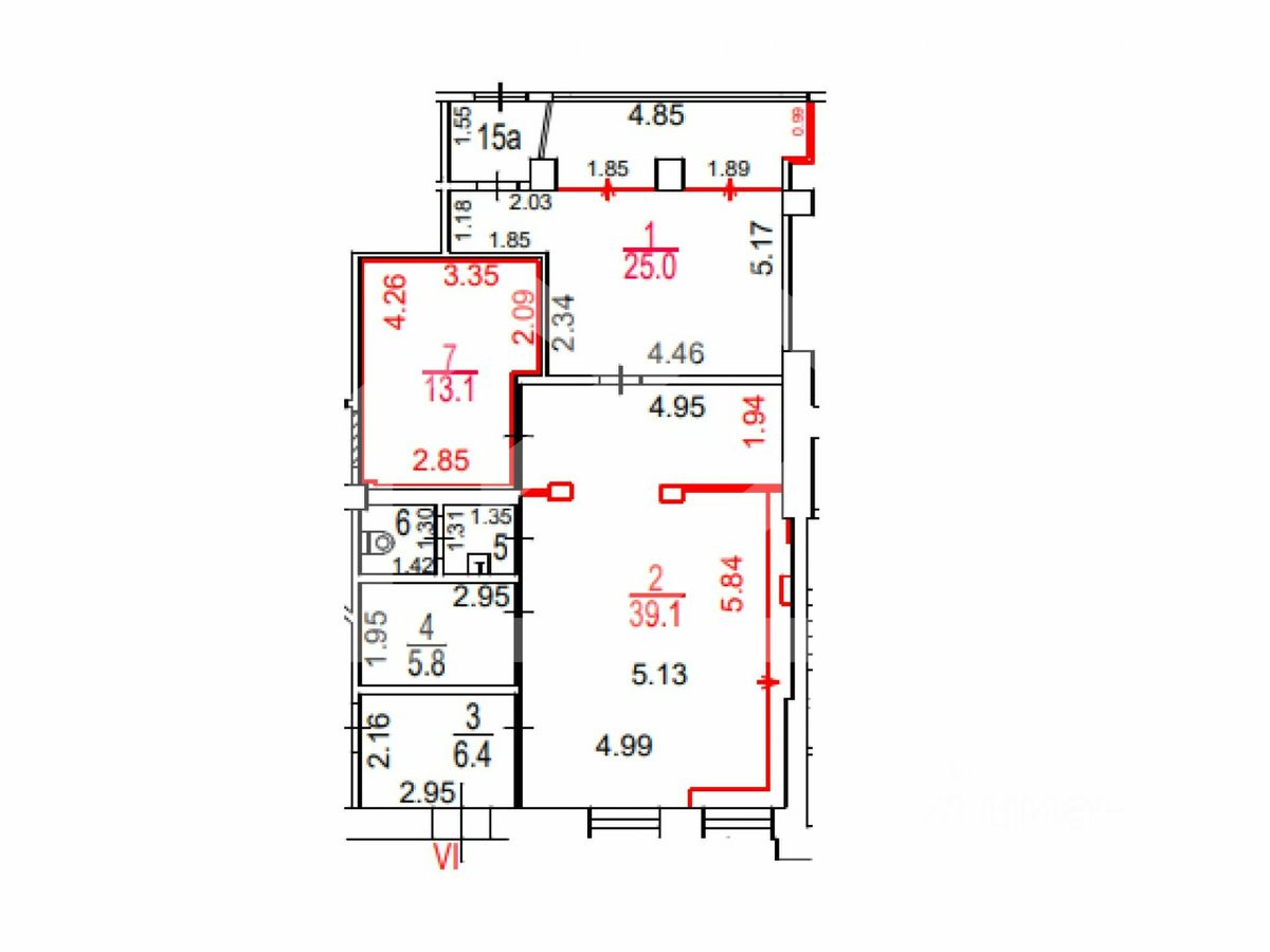 -высота потолков: от 2.64 м до 3.5 м.