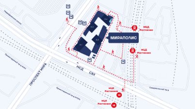 ТРАНСПОРТНАЯ ДОСТУПНОСТЬ. "Мираполис" расположен на проспекте Мира — крупной московской магистрали. По ней 8,2 км до Третьего транспортного и 11,5 км до Садового кольца. Рядом с кварталом проходит Московский скоростной диаметр (МСД). Удобная локация в 5 минутах на машине от станции метро "ВДНХ", в 400 м от МЦК "Ростокино" и быстрый выезд на главные транспортные магистрали позволяет всего за 30 мин. добраться до центра Москвы.