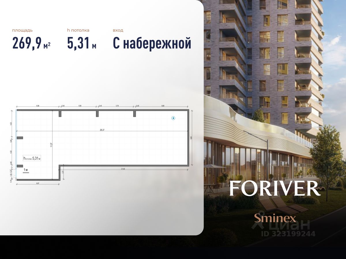 Торговое помещение площадью 269,9 кв.м. в премиальном жилом квартале FORIVER.
