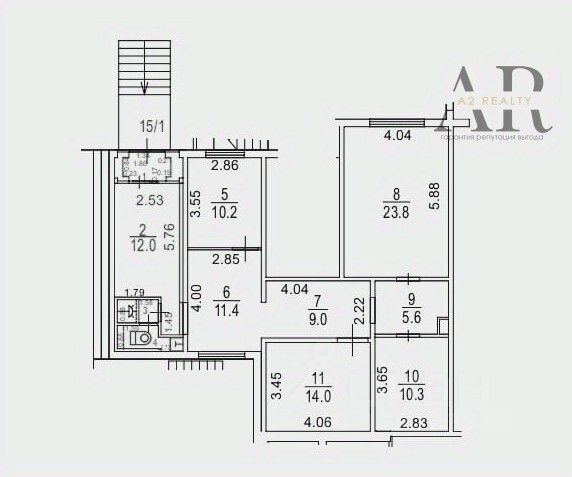 - Количество комнат: 4 (23.8 м², 14.0 м², 10.3 м², 10.2 м²) - не все стены в помещении являются несущими, поэтому можете переделать под свои нужды