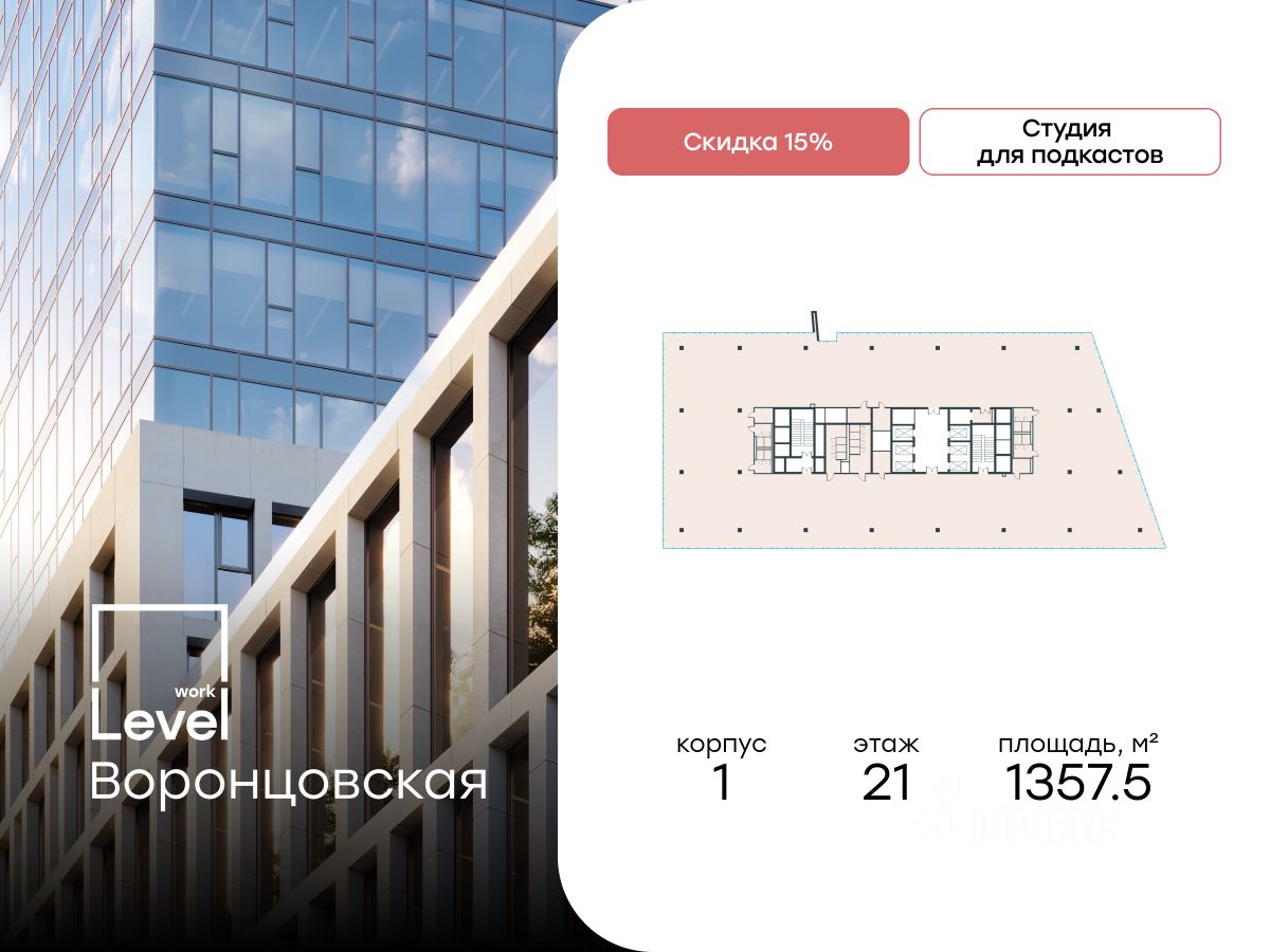Продаётся помещение площадью 1357.50 кв. м в Level work Воронцовская (от компании Level Group), новом бизнес-центре класса A в престижном Обручевском районе Москвы (ЮЗАО).