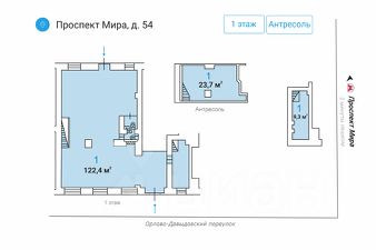 Прямая продажа без комиссий! Помещение располагается на Проспекте Мира, д.54, в шаговой доступности от метро "Проспект Мира" 2 минуты пешком.
