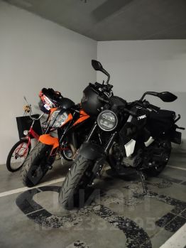 Парковка находится под круглосуточной охраной, установлено видеонаблюдение, также особенностью данного места является его недорогое содержание, в пределах 1000 рублей в месяц, за Все услуги. Место теплое, сухое, удобный въезд и выезд, не далеко от лифта, на парковку можно поместить до 5 мотоциклов, большой прицеп, либо компактные автомобили типа: