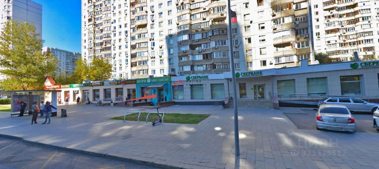 Помещение располагается в центре жилого массива, рядом с метро. Индивидуальная система вентиляции и кондиционирования. Большой автомобильный и пешеходный трафик вдоль помещения. Окружение - "Сбербанк".