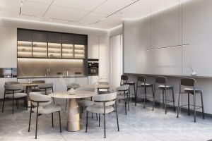 На первом этаже разместится просторное дизайнерское лобби с высотой потолков 9,6 м, стойка ресепшн и зоны ожидания для посетителей. Высота типового этажа составляет 3,6 м.