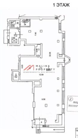 Площадь 672,5 м занимает первый этаж, подвал и антресоль, открытая планировка, отдельный вход с фасада и со двора, высота потолка 6 м, окна по фасаду. Электрическая мощность 72 кВт. Парковка перед фасадом. Место для размещения рекламы.