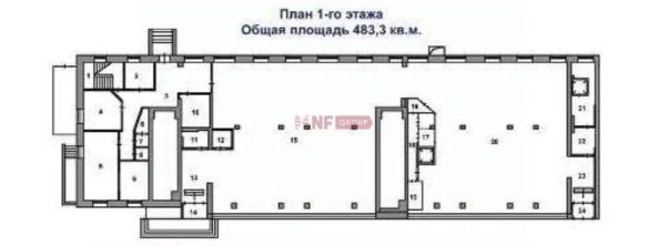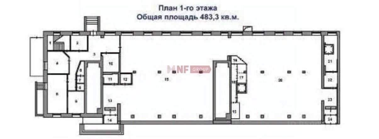 Распределение площади по этажам: 1ый этаж - 483 кв. м, Подвал 414 кв. м. Входная группа: 2 отдельных входа. Мощность: 80 кВт. Высота потолков: по запросу. Дебаркадер, грузовой лифт. Охранно-пожарная сигнализация, система дымоудаления.