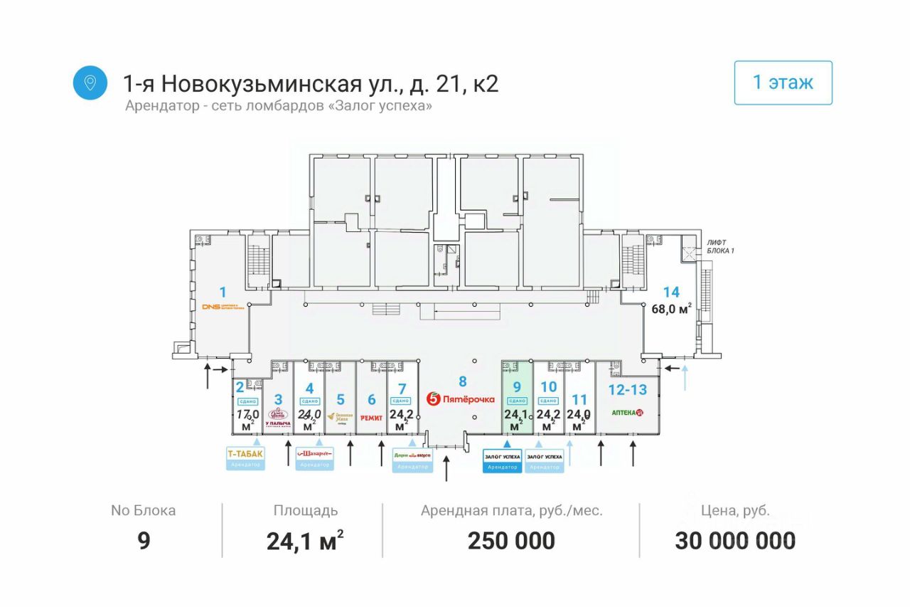 Лот: 37594. Помещение свободного назначения формата Street Retail в ЮВАО Москвы. 5 минут пешком до станции метро Рязанский проспект. Первая линия домов. Активный трафик. Плотный жилой массив. Сложившееся торговое окружение вокруг.