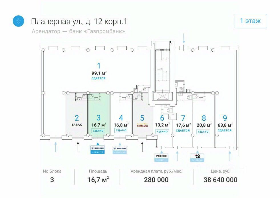 Лот: 37674. Помещение свободного назначения формата Street Retail в СЗАО Москвы. Шаговая доступность от ст. метро "Планерная" — 1 минута пешком. Отличная пешеходная и транспортная доступность. Помещение расположено в крупном сложившемся жилом районе с высокой плотностью застройки и развитой инфраструктурой.