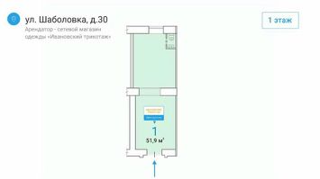 Лот: 37785. Помещение свободного назначения формата Street Retail в ЮАО Москвы. 1 минута пешком до станции метро Шаболовская. Интенсивные пешеходный и автомобильный трафики. Развитая инфраструктура, крупный жилой район.