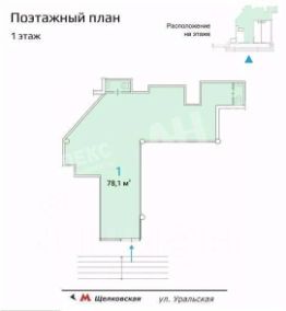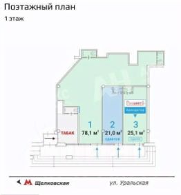 Лот 967308-Г Предложение от Собственника! Возможно использовать как арендный бизнес. Продается помещение площадью 78.1 м² в ОСЗ в непосредственной близости от станции метро "Щелковская". Пешее расстояние до метро составляет три минуты. Объект характеризуется отличной пешеходной и транспортной доступностью.