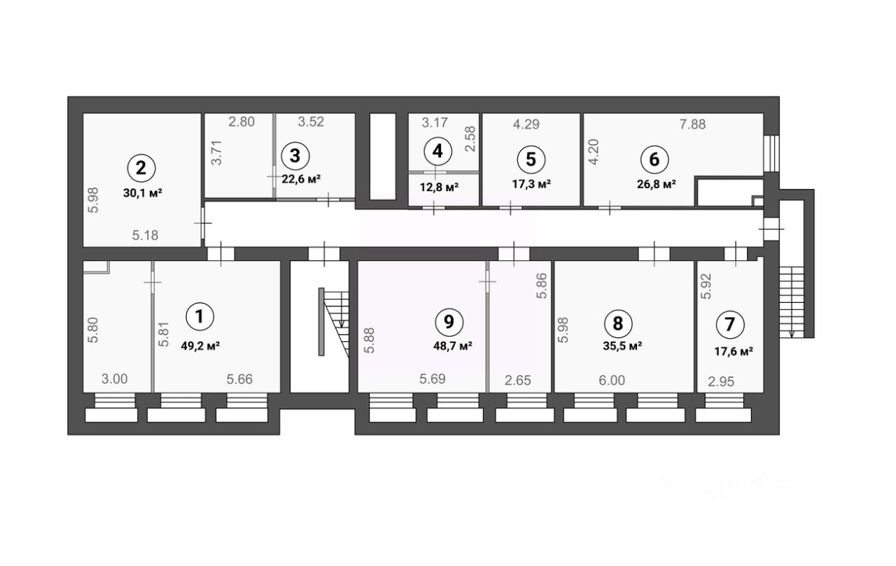 В продаже пространство помещений свободного назначения, которое занимает весь цокольный этаж. Общая площадь 320 м2. На этаже качественный ремонт всех помещений и мест общественного пользования. Всего 9 помещений, из которых 8 сданы в аренду. Собственная управляющая компания, охрана, видеонаблюдение, уборка, высокоскоростной интернет. Якорными арендаторами являются Озон и СДЭК. Общий месячный арендный платеж составляет 555К. В этом бизнес-центре также есть в продаже другие этажи и отдельные помещения.