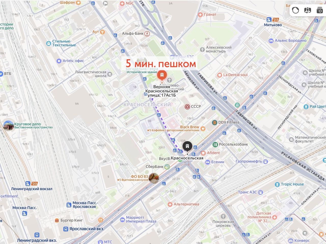 Здание расположено в Красносельском районе в 5 минутах пешей доступности от метро Красносельская. До площади трех вокзалов 12-15 минут пешком. Удобный выезд на ТТК, до центра города 10 минут на авто. Отличная транспортная доступность и насыщенное культурное окружение. Парковые и пешеходные зоны, Алексеево-Воздвиженский храм, Музей шоколада и Дом Абрикосовых.