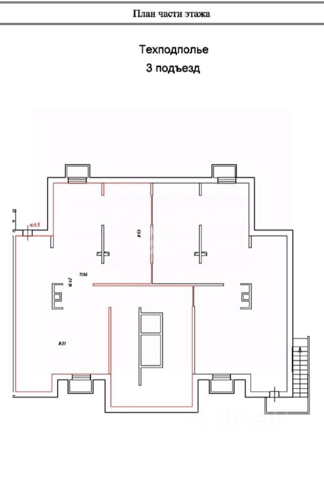 Арт. 123835676 Продаётся нежилое помещение площадью 210,3 м², расположенное на уровне технического подполья в жилом 15-этажном доме 2015 года постройки.