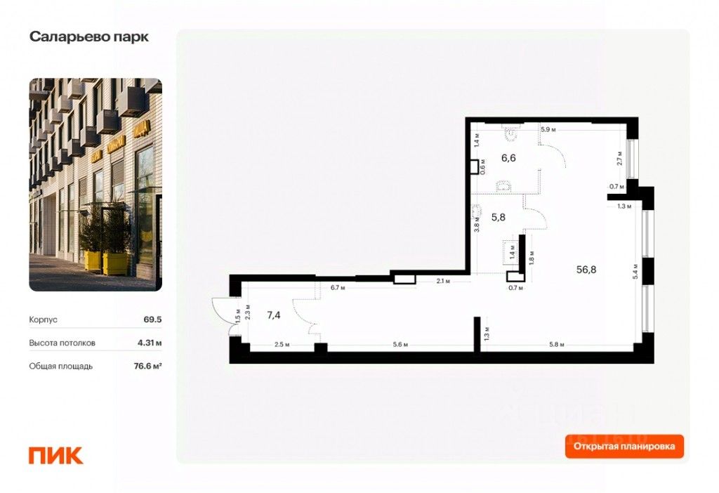 До торговых центров "Саларис" пять минут пешком, до "Рио", Metro Cash and Carry и "Леруа Мерлен" — пять минут на автомобиле. Корпус 69.5. Ввод в эксплуатацию 3 квартал 2028.