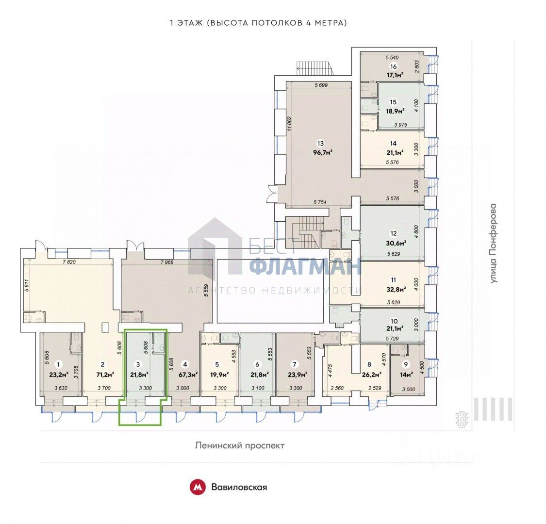 Арт. 122700453 Продается помещение свободного назначения 23,6 кв.м. на 1 этаже 9ми этажного жилого дома на ключевой артерии города Ленинский проспект