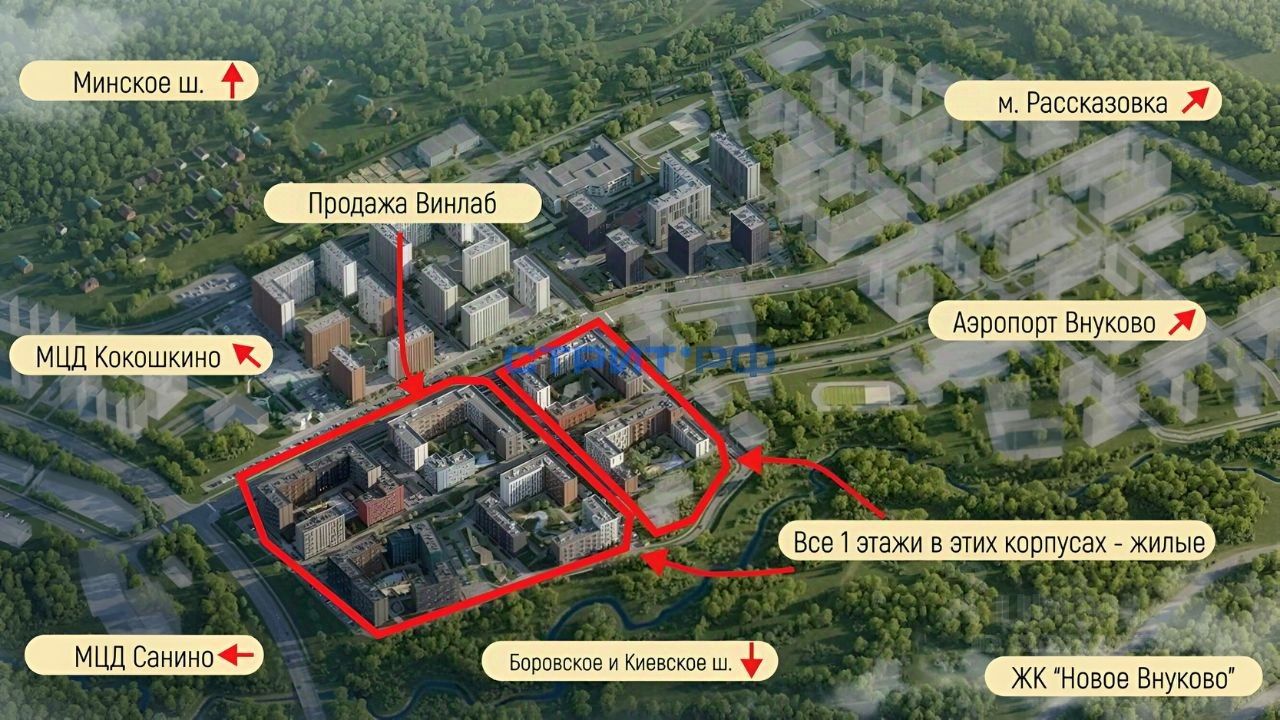 Арт. 95742022 Торговая площадь 111,7 м² с сетевым арендатором "Винлаб" в ЖК "Новое Внуково".