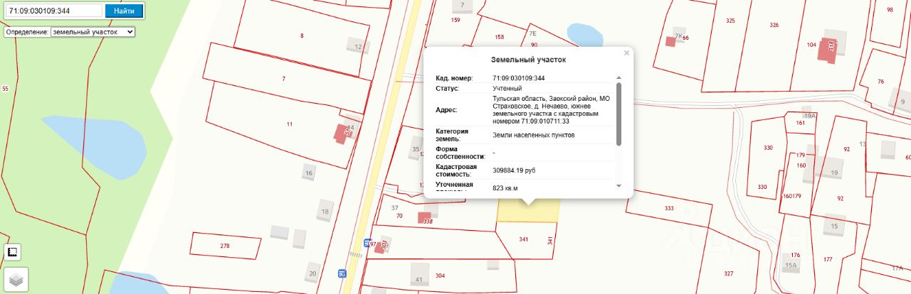 продажа земельного участка из земель населенных пунктов с кадастровым номером 71:09:030109:344, площадь 823 кв. м, адрес: Тульская область, Заокский район, МО Страховское, д. Нечаево, южнее земельного участка с кадастровым номером 71:09:010711:33, вид разрешенного использования: для ведения личного подсобного хозяйства