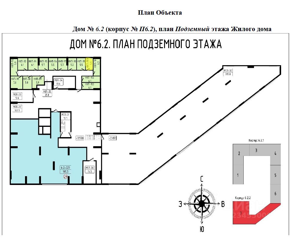 Продается кладовка под корпусом 6.2.2 Дзен кварталы, под данным корпусом расположено 15 кладовок. Расположение кладовки выделено на рисунке. Срок передачи кладовки не позднее февраля 2026 года, окончание строительства январь 2026 года. Чтобы попасть в кладовку необходимо спуститься по лестнице с 1 этажа.