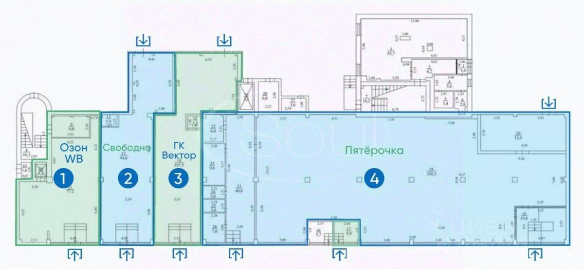 1075824 Предлагается к продаже готовый арендный бизнес — торговое помещение площадью 472,4 м² с надёжным федеральным арендатором сетью супермаркетов "Пятёрочка". Объект расположен на первой линии улицы Вольная, на территории производственно-складского комплекса с долгосрочной арендой земельного участка до 2061 года.