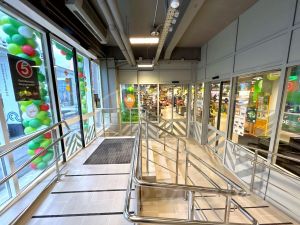 Помещение имеет два отдельных входа с улицы и один со двора, предназначенный для разгрузки и погрузки. Благодаря панорамному остеклению и открытой колонной планировке, объект отличается отличной видимостью и удобством для организации торгового пространства.