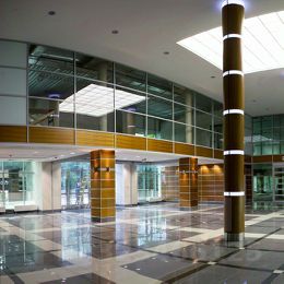 Просторный стеклянный атриум в бизнес-центре "Барклай Плаза II" обеспечивает освещение офисного пространства в любой точке.