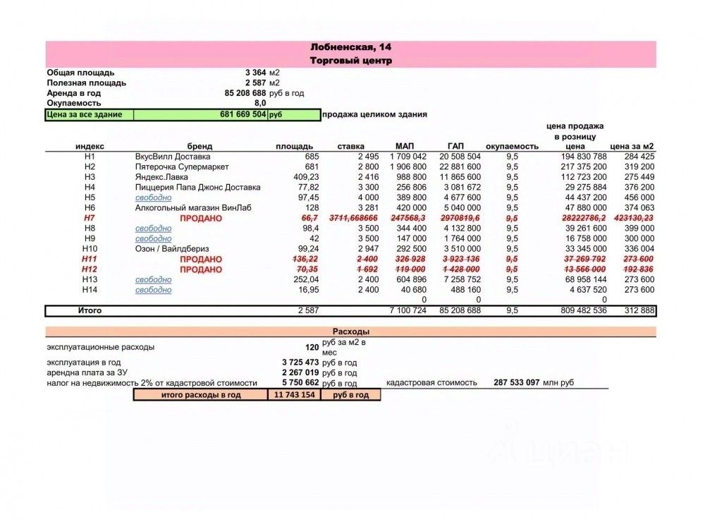 . Арендаторы: Пятерочка, ВкусВилл.Доставка, Яндекс.Лавка, пиццерия Папа Джонс, аптека Горздрав, алкомаркет Винлаб, ПВЗ OZON/Wildberries и другие
