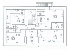 Из 2-ух этажей и полноценным цокольным этажом с кабинетной планировкой, двумя санузлами, системами кондиционирования и вентиляции, имеет отдельный вход с улицы.