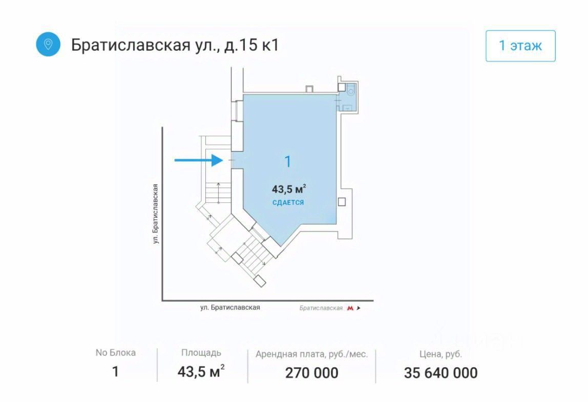 Лот: 37914. Помещение свободного назначения формата Street Retail в ЮВАО Москвы. Шаговая доступность от ст. метро "Братиславская" - 5 минут пешком. Отличная пешеходная и транспортная доступность