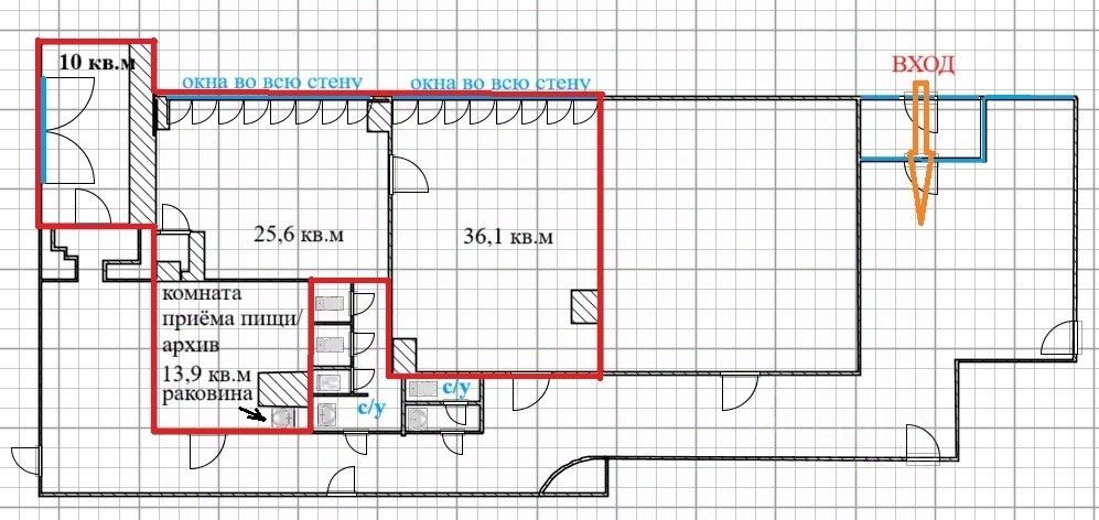 В отдельной комнате площадью 13,9 кв.м установлена раковина, что позволит организовать в ней удобное место для приёма пищи или переговорную комнату, или использовать её для хранения архивных документов.