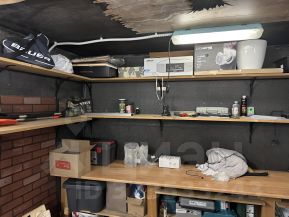 Пыли нет. Внутри гаража металлические покрашенные полки, добротный верстак во всю стену с полками,можно закрыть шторками. В гараже сделаны розетки около ворот и в противоположной стороне. Хорошее яркое освещение с двух сторон.