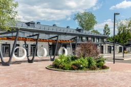 Отделка фасадов выполнена панелями с имитацией клинкерного кирпича. Дополнительно на территории организованы зоны отдыха, также дополнительно имеется возможность для организации летних веранд и кафе.