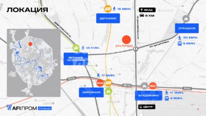 Четырехэтажный промышленный комплекс AFI ПРОМ Алтуфьево возводится на пересечении Алтуфьевского шоссе и улице Хачатуряна. Его транспортная доступность позволит владельцам производств снизить издержки на логистику и привлечь квалифицированный персонал, а инвесторам получать устойчивый доход.
